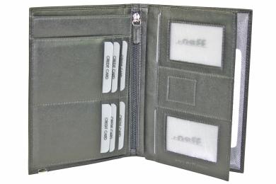 Brieftasche, ca. 12,5x17cm, 8 Cards, 3 Steckf., 2 Fenster, sw.